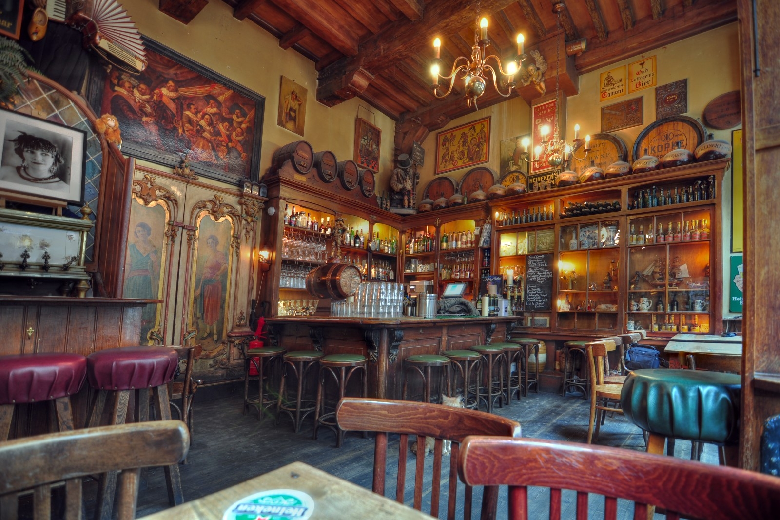 Café't Smalle 1780年在Egelantiersgracht運河邊作為釀酒廠開業,今天在歷史氣息濃厚的空間裡賣啤酒和Genever荷蘭琴酒,天氣好的傍晚運河露台很快就坐滿了。荷蘭當地人的點法是kopstootje:一小杯Genever配一杯生啤加在一起喝。老人在旁讀報紙,情侶輕聲爭論,觀光客拿著地圖走進來,被吧台服務生不帶儀式感地指了個方向,像一部緩慢進行的舞台劇。